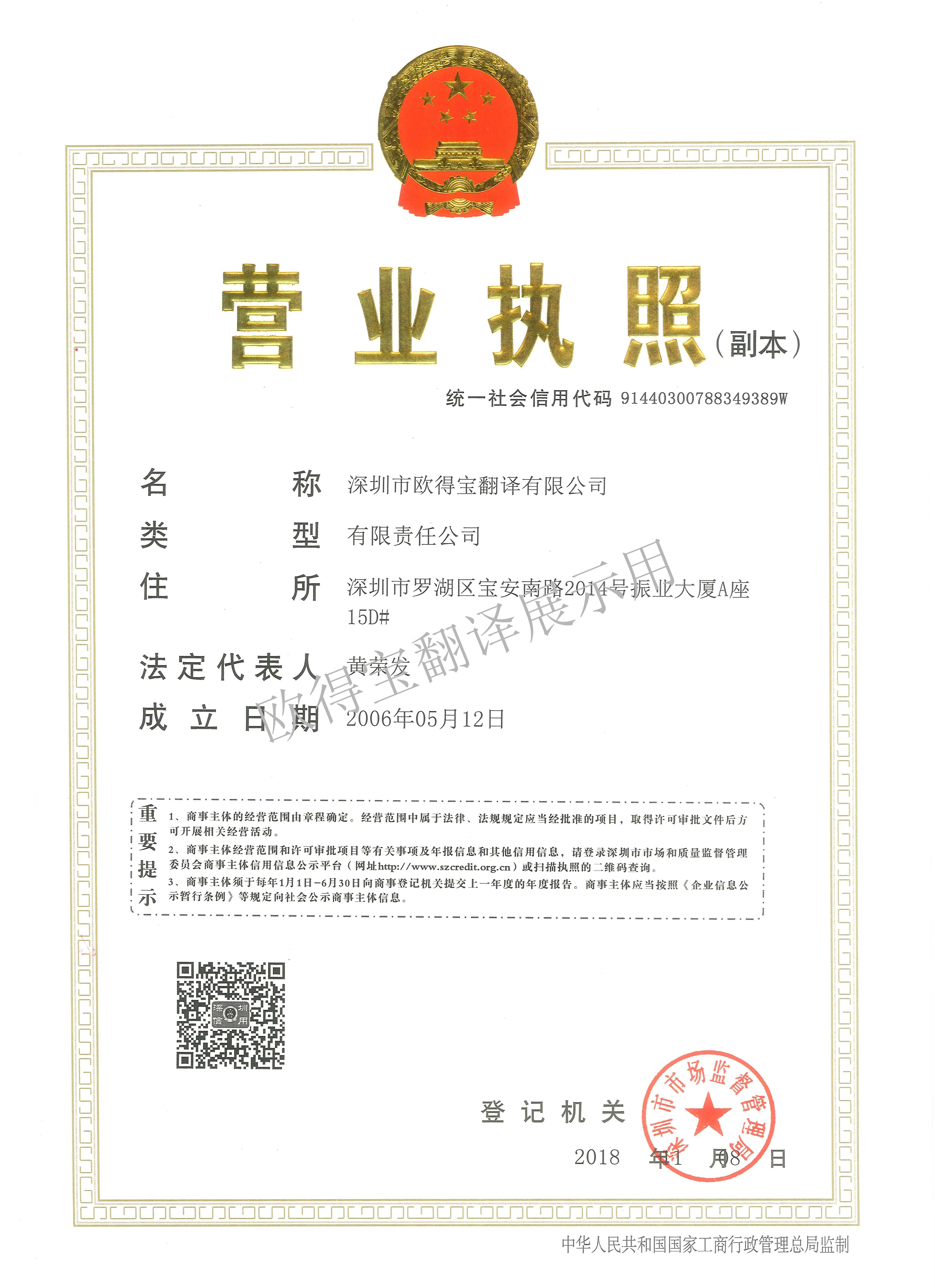 欧得宝翻译有限公司是一家专业性强、实力雄厚的大型翻译服务机构,严格的质量控制体系,齐全的翻译从业资质,灵活的翻译收费标准,定位高品质翻译服务。